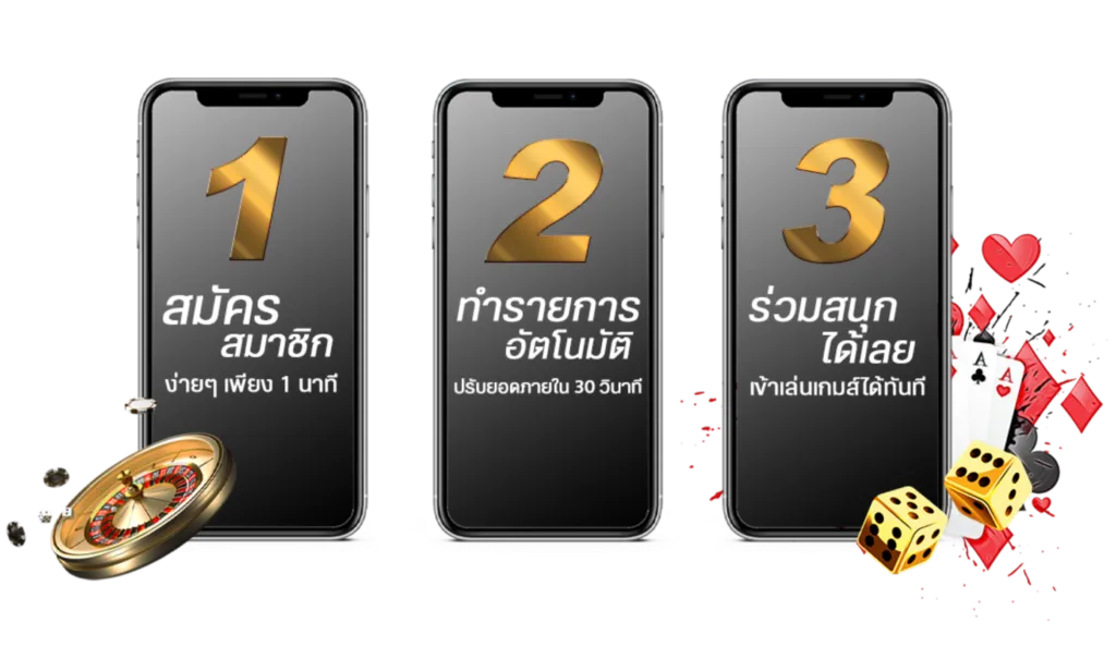 ตอบ : กรอกข้อมูลส่วนตัวผ่านหน้าเว็บ ระบุเบอร์โทรศัพท์และบัญชีธนาคาร รอรับ Username/Password ผ่าน SMS จากนั้นเข้าสู่ระบบและเริ่มเล่นได้ทันที
